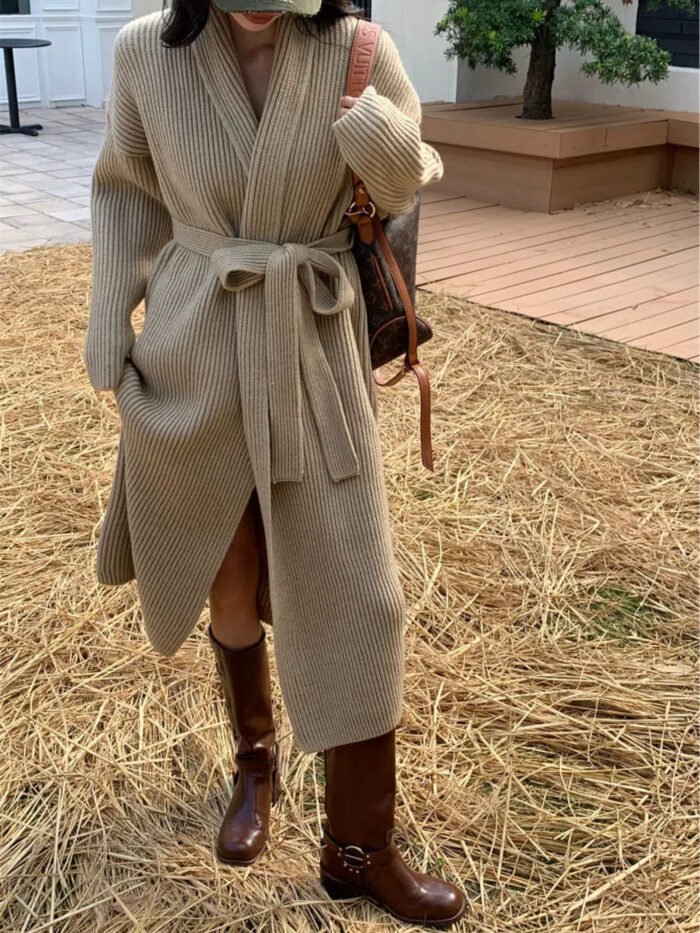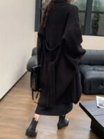 This women’s long cardigan sweater is the perfect blend of comfort and style. Featuring long dolman sleeves, a wide collar, and an open draped front, it offers a relaxed fit with stretch-knit fabric for easy movement. The solid color, knee-length design, and split hem make it a versatile choice for layering. Functional side pockets add practicality, while the cozy yet lightweight material insulates against the cold without bulk. Ideal for casual or business wear, it pairs well with jeans, leggings, or dresses, making it a go-to piece for fall and winter. Machine washable for easy care.