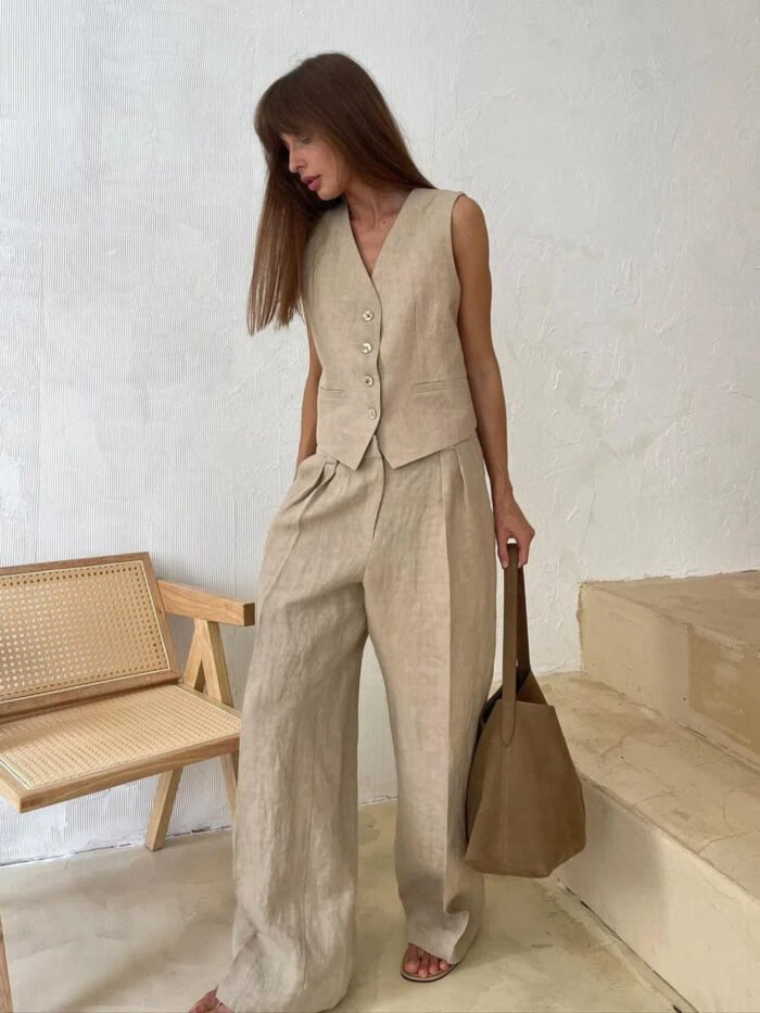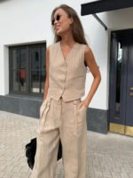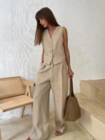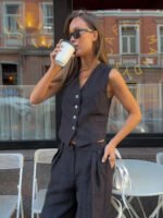 Make a bold statement with our Sleeveless Vest & Low Waist Pants Suit. Designed for modern, confident styling, this set pairs a sleek sleeveless vest with flattering low-waist pants for an effortlessly chic and fashion-forward look. The tailored vest adds structure, while the relaxed, low-waisted pants offer a comfortable yet edgy vibe. Whether dressed up with heels for an evening out or paired with sneakers for a more laid-back style, this suit is perfect for creating a sharp, contemporary ensemble that transitions seamlessly from day to night.